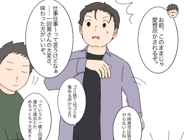[9]ワンオペ余裕?留守番夫|友人から指摘され自分がどれほど家事や育児に関われていなかったのかを思い知った夫