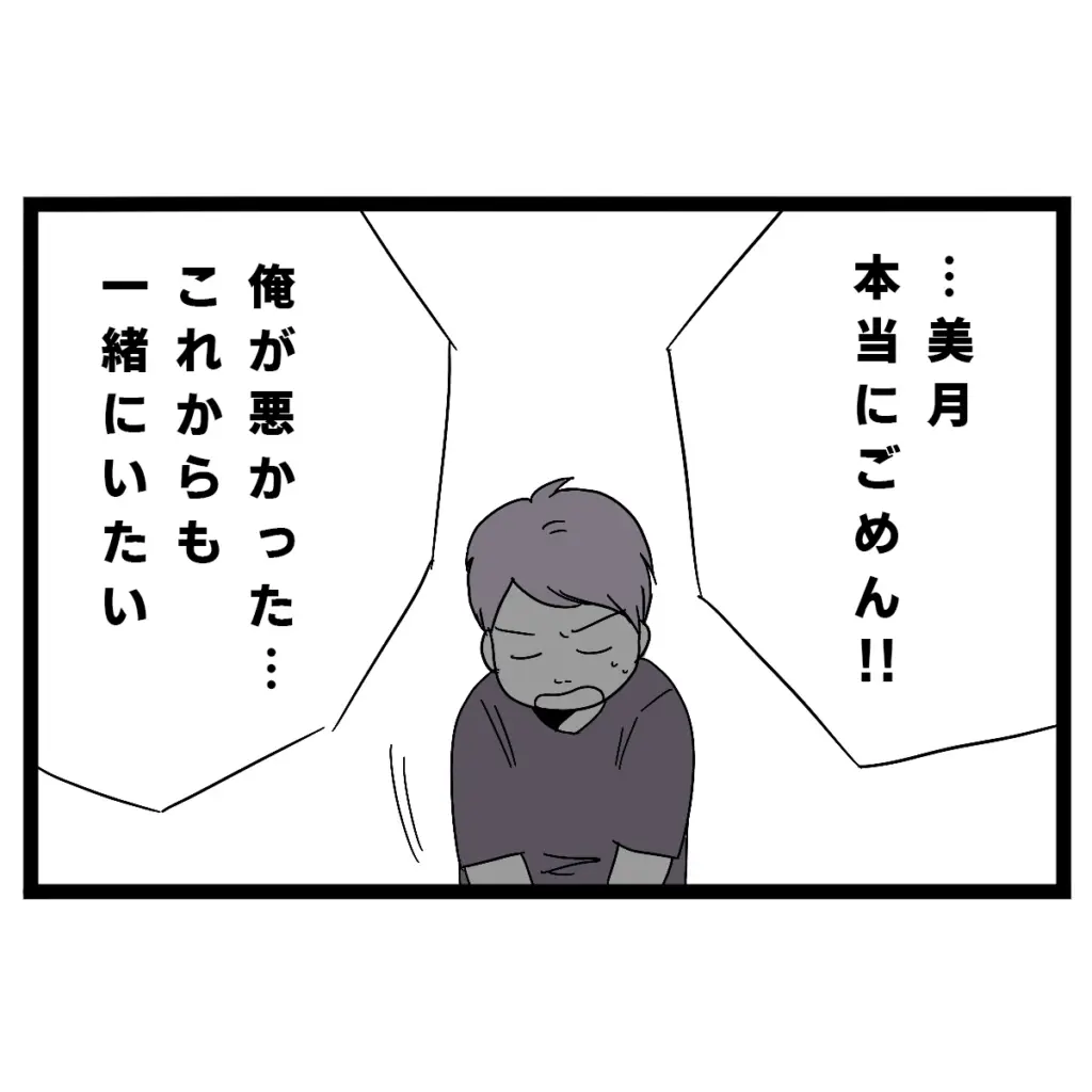 「美月、本当にごめん!俺が悪かった・・・これからも一緒にいたい」タクヤは開口一番、謝罪の言葉を口にしました。自分の言い分を述べて無理に家に戻そうとするのかと思いきや、素直に謝るタクヤに、私は思わず拍子抜けしてしまいました。