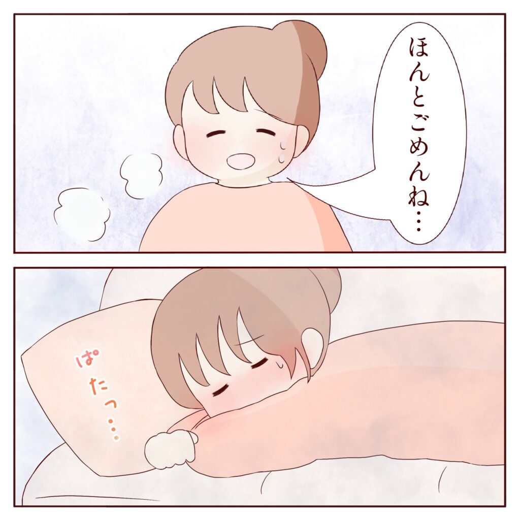 「ほんとごめんね・・」寂しいはずなのに私に心配をかけまいと振る舞う子ども達に申し訳なく思いながらも、もう限界だった私は子ども達が寝室に行ったのを見届けるとそのままソファに倒れ込みました。