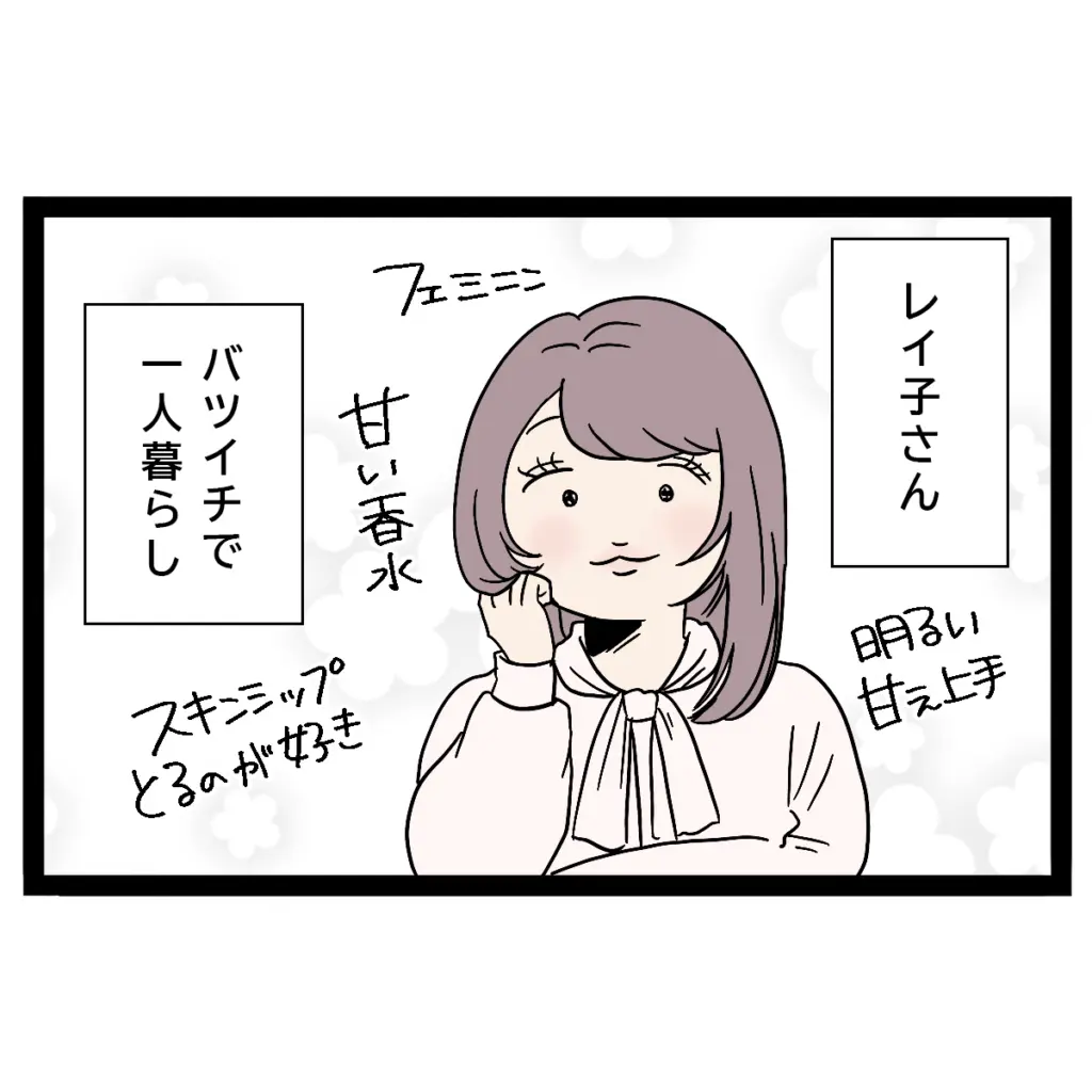 まさひでによると、レイ子さんはバツイチで一人暮らし。性格は明るくて甘え上手。服装はフェミニンな雰囲気で、いつもふんわりと甘い香りを漂わせているそう。本人いわく、スキンシップをとるのが好きで、男性社員へのボディタッチは日常茶飯事。まさに守ってあげたくなる女性の典型例といった感じです。