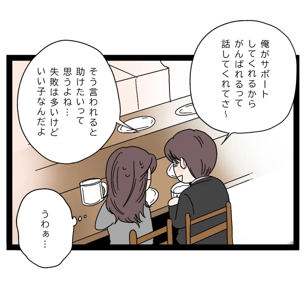 「俺がサポートしてくれるからがんばれるって話してくれてさ~、そう言われると助けたいって思うよね・・・失敗は多いけどいい子なんだよ」酔った勢いなのか、レイ子さんのことをペラペラと話し出すまさひで。こんな典型的な手口に引っかかる人がいるなんて・・・我が弟ながら情けなくて、私は思わず落ち込んでしまいました。