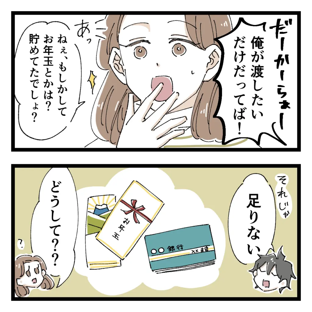 「だーかーらぁー。俺が渡したいだけだってば!」と聞く耳を持たないショウに、「お年玉やお小遣いを貯めてたでしょ?」と聞いてみると、「それじゃ足りない」とのこと。小さい頃から貯めていたからけっこうあったはず・・と思いながら「どうして??」と聞くと、