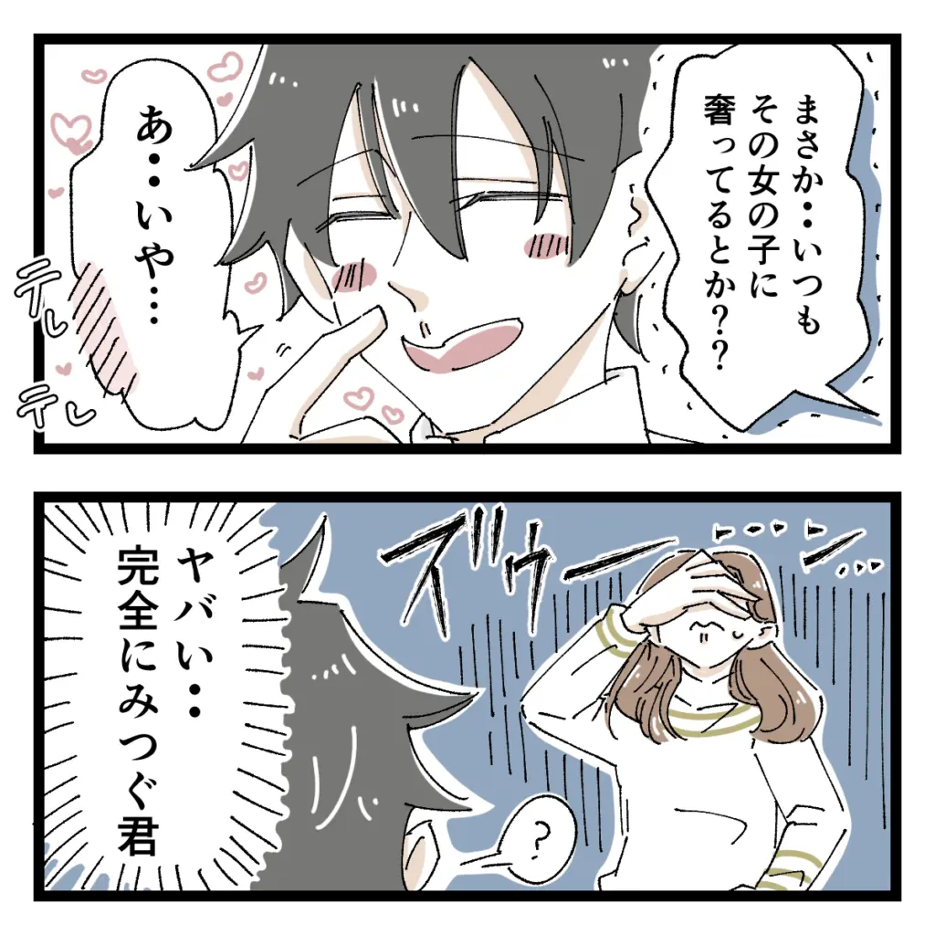 「まさか・・いつもその女の子に奢ってるとか??」と恐る恐る聞きました。違うと言ってくれ・・という願いも虚しく、「あ・・いや・・」と鼻の下を伸ばして照れ臭そうに答えるショウ。ヤバい・・完全にみつぐ君じゃん。