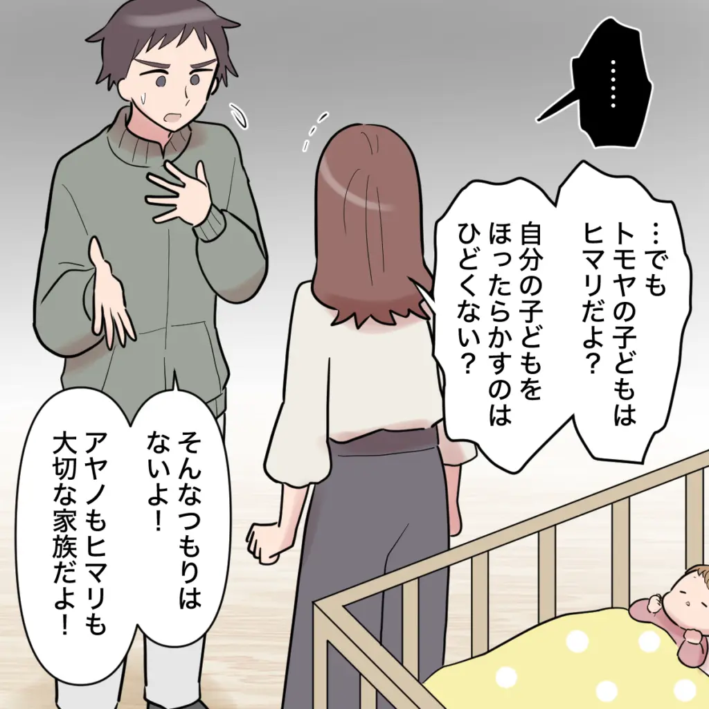そして、「・・でもトモヤの子どもはヒマリだよ?自分の子どもをほったらかすのはひどくない?」私がそう言うと、「そんなつもりはないよ!アヤノもヒマリも大切な家族だよ!」とトモヤが言いましたが、