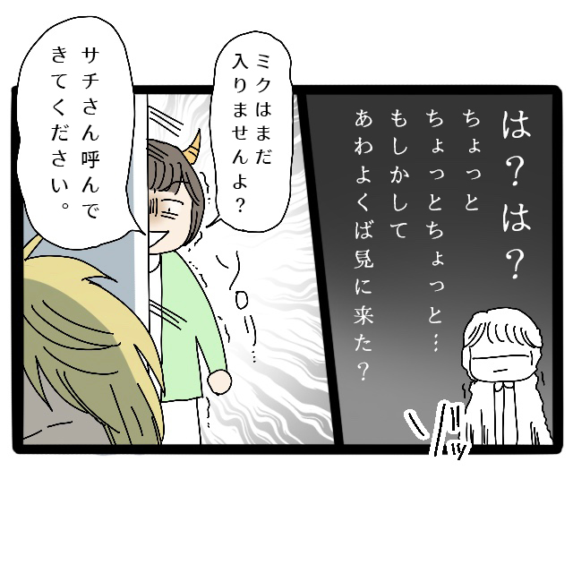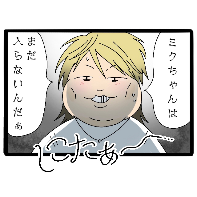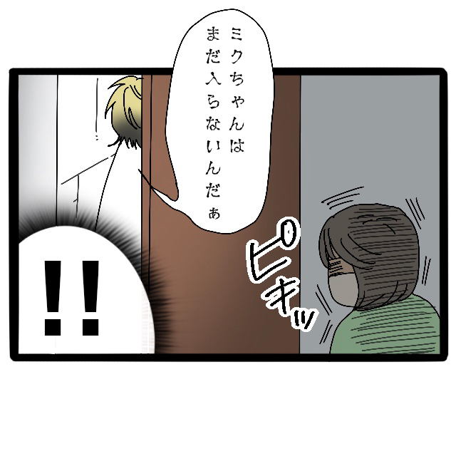 は?は?ちょっと、ちょっとちょっと・・。もしかして、あわよくば見に来た?ゾッとすると同時に怒りが湧きあがってきた私。でも、信也君が本当にミクの着替えを見ようとしていたかはわからないので強くは言えません。私は信也君の背後から「ミクはまだ入りませんよ?サチさん呼んできてください」と怒りを抑えながら声をかけました。
