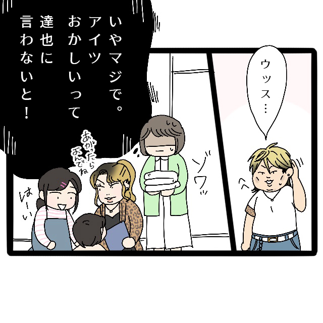 私が声をかけると、頭を掻きながら「ウッス・・」と言ってそそくさとお風呂場から出て行った信也君。いやマジで。アイツおかしいって達也に言わないと!私は疑わしい行動をした信也君にゾッとしつつ警戒心を強めました。