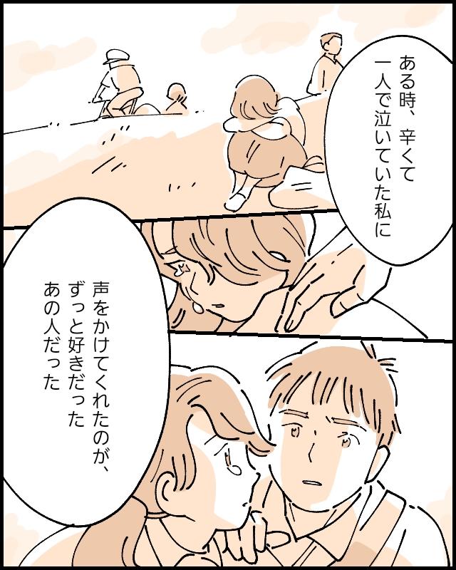 「そしてある時、辛くて一人で泣いていた私に声をかけてくれたのが、ずっと好きだったあの人だった」史子さんは、好きだった人との出会いを話してくれました。