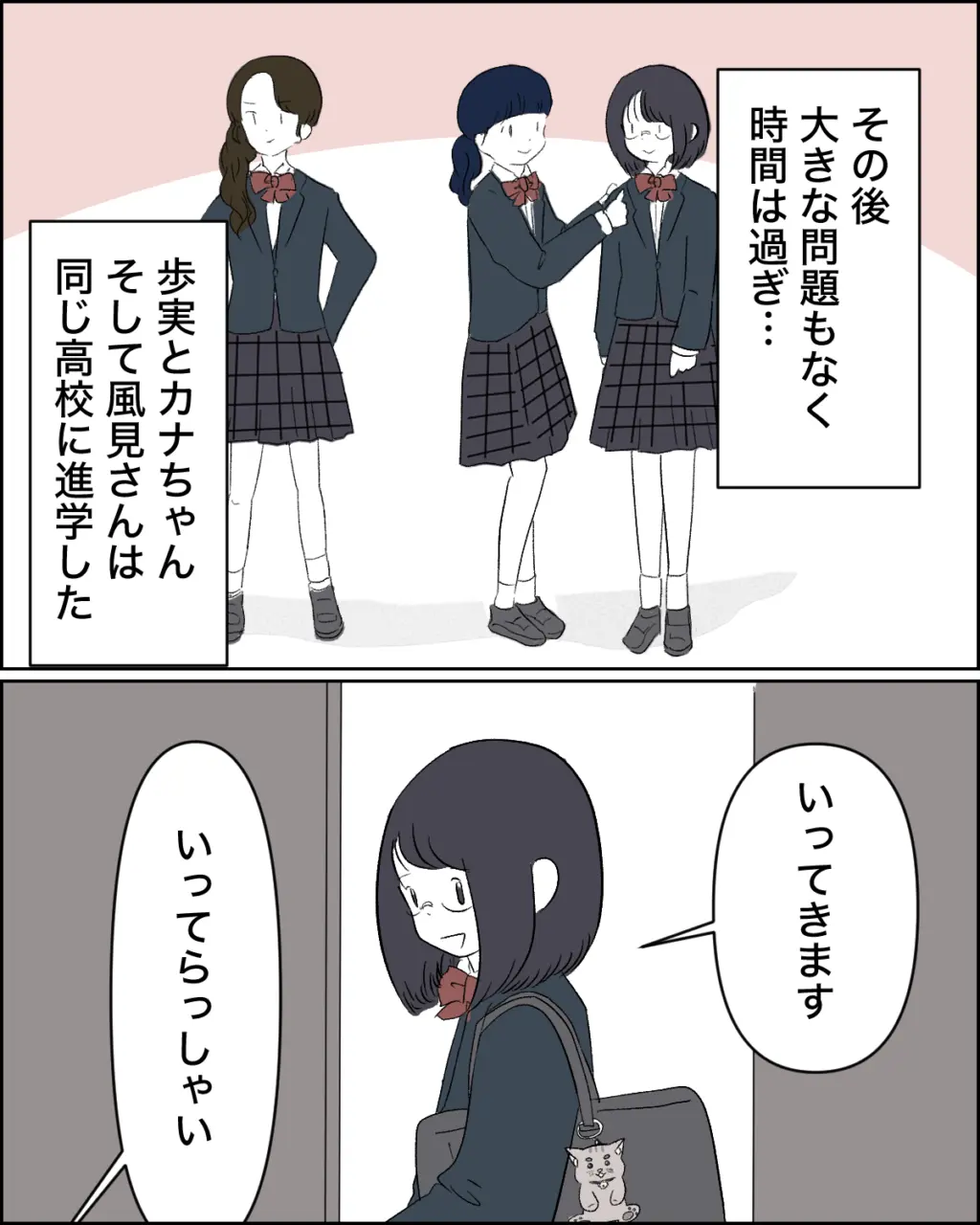 その後、大きな問題もなく時間は過ぎ、歩実とカナちゃん、そして風見さんは同じ高校に進学しました。