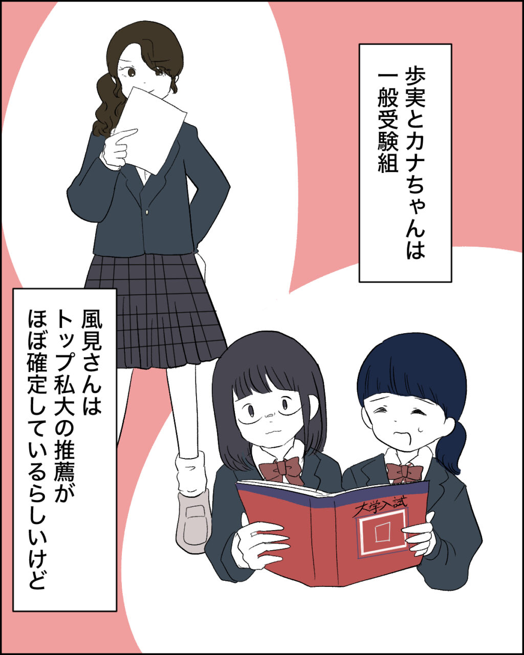 歩実とカナちゃんは一般受験組、風見さんはトップ次第の推薦がほぼ確定しているらしいけど・・。どうか、歩実の邪魔をしませんように。と強くお願いしました。