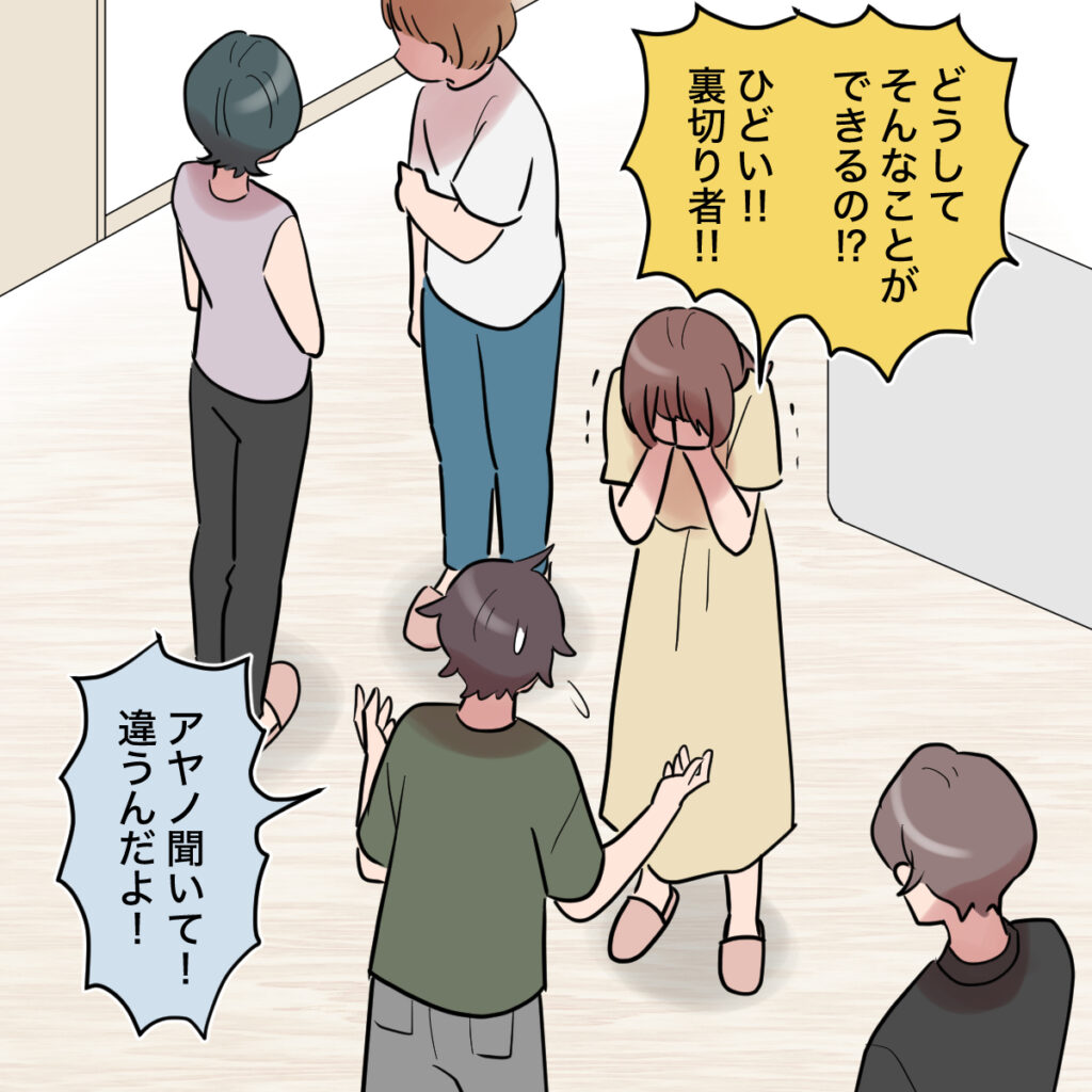 「どうしてそんなことができるの!?ひどい!!裏切り者!!」と泣いている私に、「アヤノ聞いて!違うんだよ!」と必死に否定するトモヤ、
