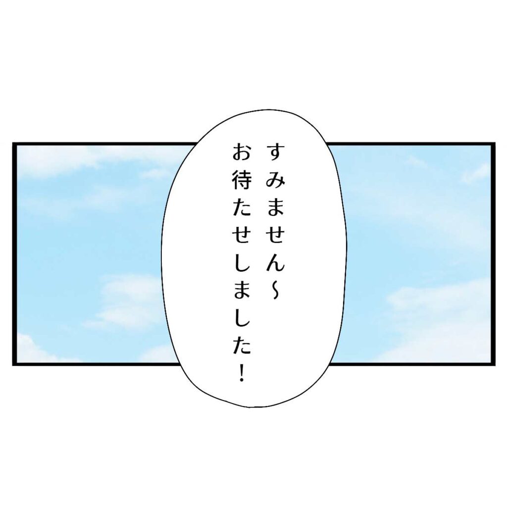 そして迎えた相談当日。「すみません~お待たせしました!」澄み渡る青空の下、信也さんの元気な声が公園に響き渡りました。しかし、先に到着していたママ友たちは、信也さんの姿を見て驚きます。