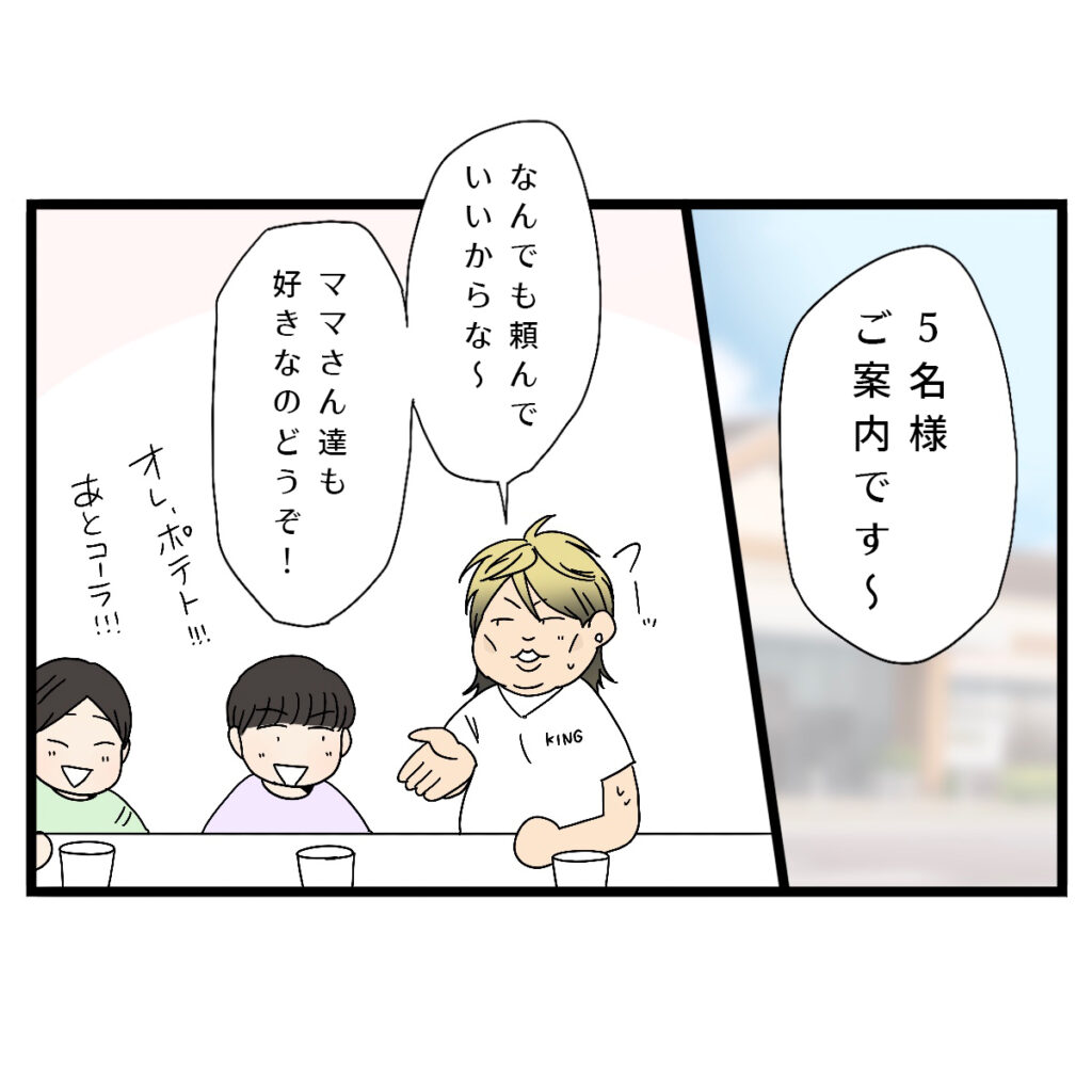 カフェに着くなり、子どもたちとママ友に「なんでも頼んでいいからな~ママさん達も好きなのどうぞ!」と気前よく声をかける信也さん。その言葉に、子どもたちは遠慮することなく次々と食べたいものを注文します。