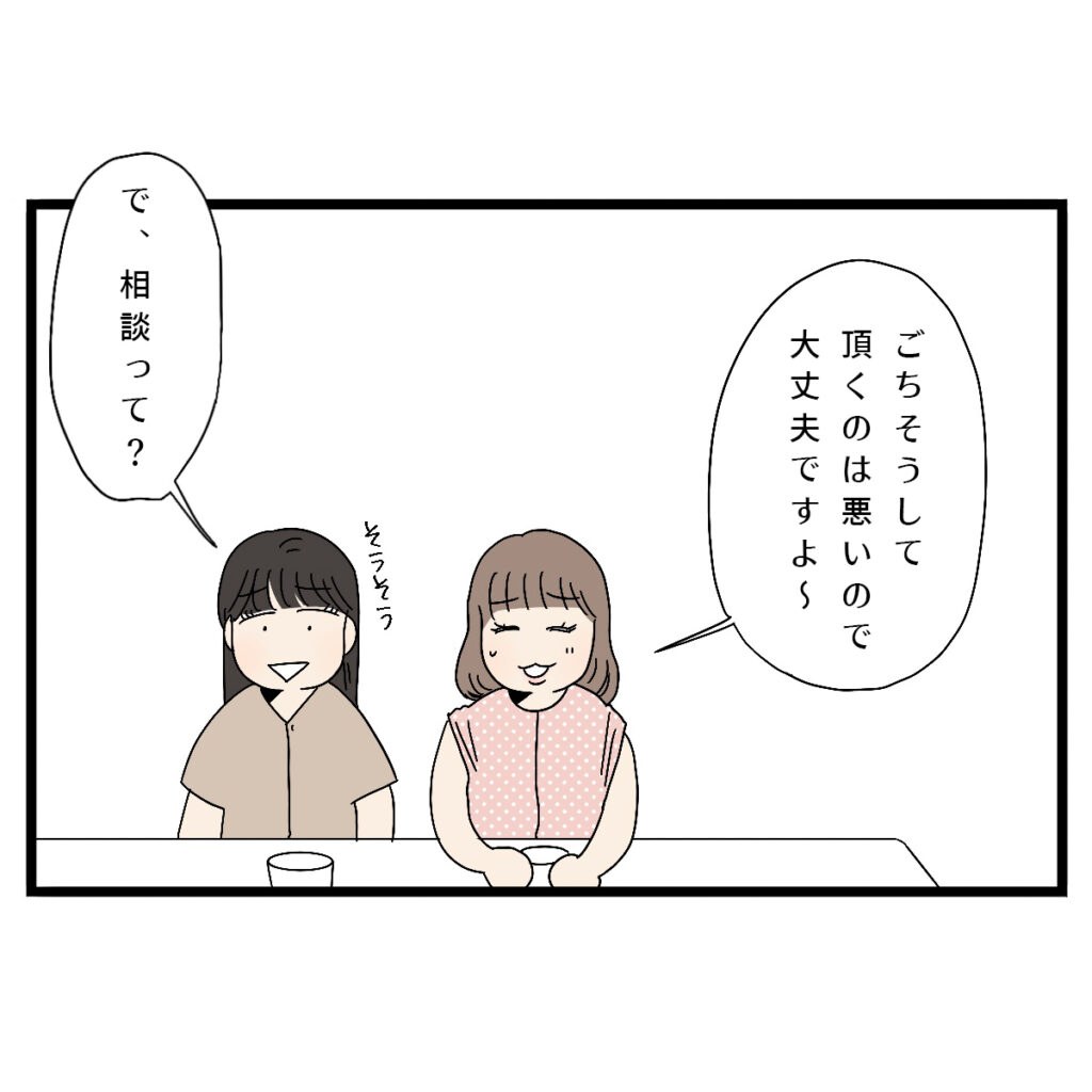 「ごちそうして頂くのは悪いので大丈夫ですよ~」と遠慮がちに言うかずくんママ。たっくんママも「そうそう」と相づちを打つと、「で、相談って?」と本題に入りました。