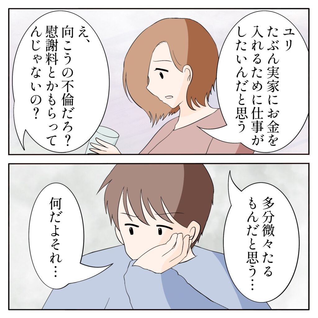 「ユリ、多分実家にお金を入れるために仕事がしたいんだと思う」姉ちゃんのその言葉に、俺は少し引っかかりを覚えました。「向こうの不倫だろ?慰謝料とかもらってんじゃないの?」そう聞き返すと、姉ちゃんはユリ姉の様子を思い浮かべるように一瞬黙り込み、「多分微々たるもんだと思う・・・」と小さくつぶやきました。