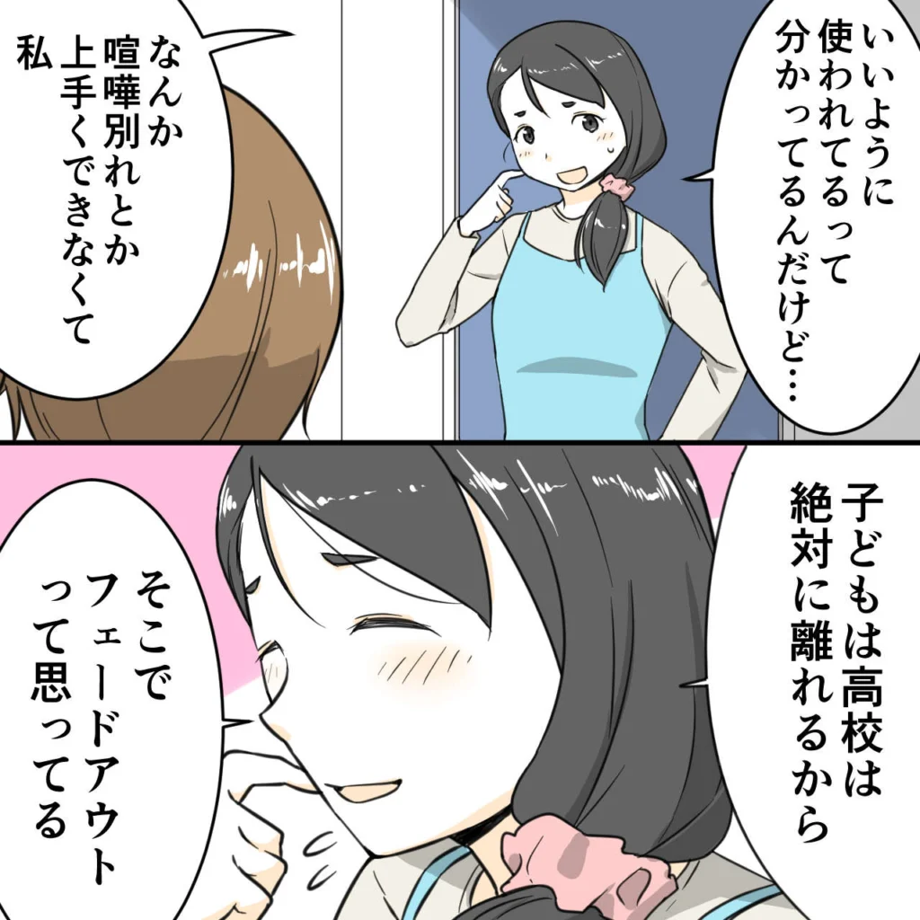 「いいように使われてるって分かってるんだけど、なんか喧嘩別れとか上手くできなくて。子どもは高校は絶対に離れるからそこでフェードアウトって思ってる」そう話すユウちゃんママ。