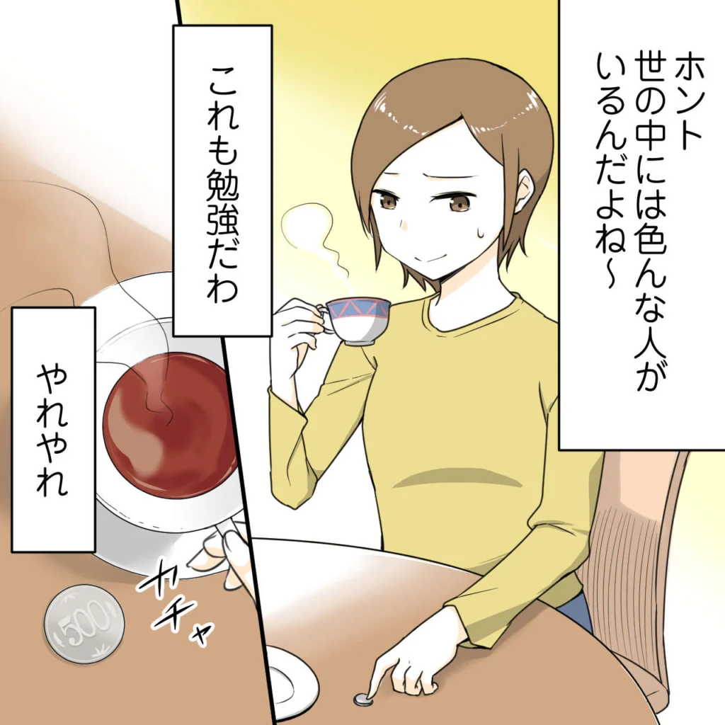 今回の件で、世の中には色々な人がいるんだなと思いました。返ってこなかった四千五百円は、ハルちゃんママとの手切れ金と勉強代だと思うことにします。これから先もし同じようなことがあっても、もう二度とお金は渡さない・・・そう心に固く誓いました。