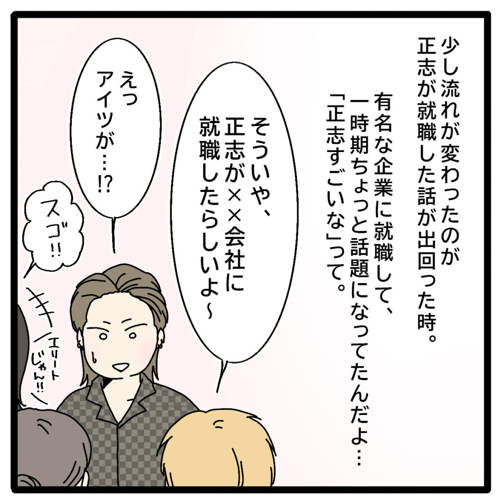 そんな関係に変化が訪れたのは、正志が就職したという噂が地元に広まった頃でした。有名企業に就職した正志は、地元でちょっとした時の人になっていたそうです。総一郎さんは、自分より下の存在だと思っていた正志が誰もが知る有名企業に就職したことを耳にすると、「えっ、アイツが・・・!?」と複雑そうに驚きました。