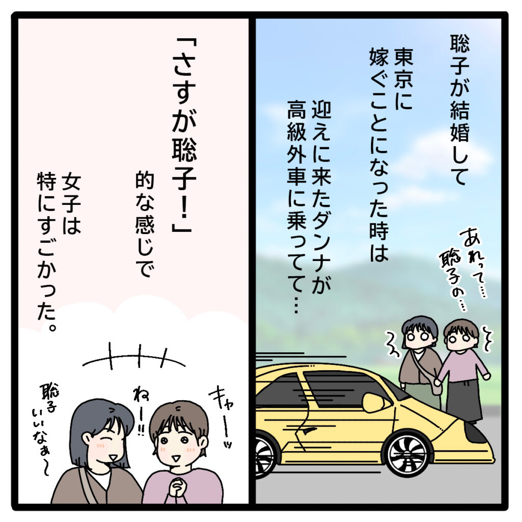聡子さんが結婚を機に東京へ嫁ぐことになったときは、迎えに来た夫が高級外車に乗っていたこともあり、地元では「さすが聡子!」と大きな話題になったそうです。特に女性陣の盛り上がりはすさまじく、聡子さんの姿に都会への憧れを重ねる人も少なくありませんでした。