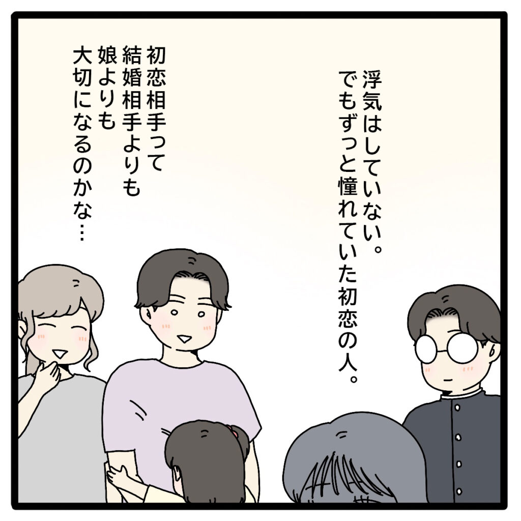 浮気はしていない。でも、ずっと憧れていた初恋の人。初恋の相手が、妻や娘よりも大切な存在になってしまうなんてことがあるのでしょうか。学生時代に遠くから眺めていただけで思い出もほとんどない相手に、私たちが家族として積み重ねてきた時間が負けるなんて、信じたくありませんでした。