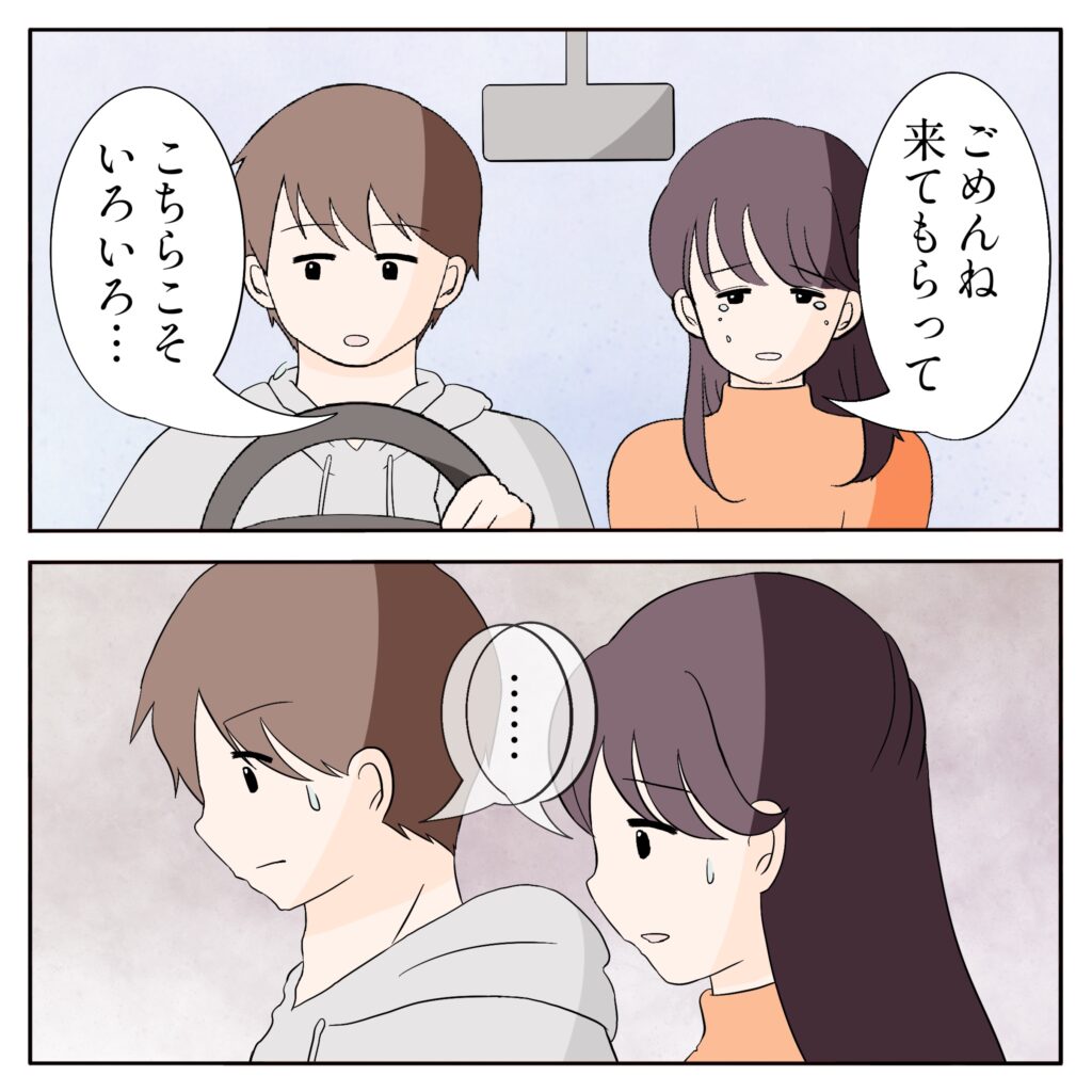 車内には俺とユリ姉の2人きり。しんと静まり返る空気の中、ユリ姉が「ごめんね、来てもらって」と口を開きます。俺は気まずさからか彼女の顔をうまく見れず、視線を逸らしたまま、「こちらこそ、いろいろ・・・」とつぶやきました。ユリ姉が話したいことって何だろう・・・。俺は気が気でなりませんでした。