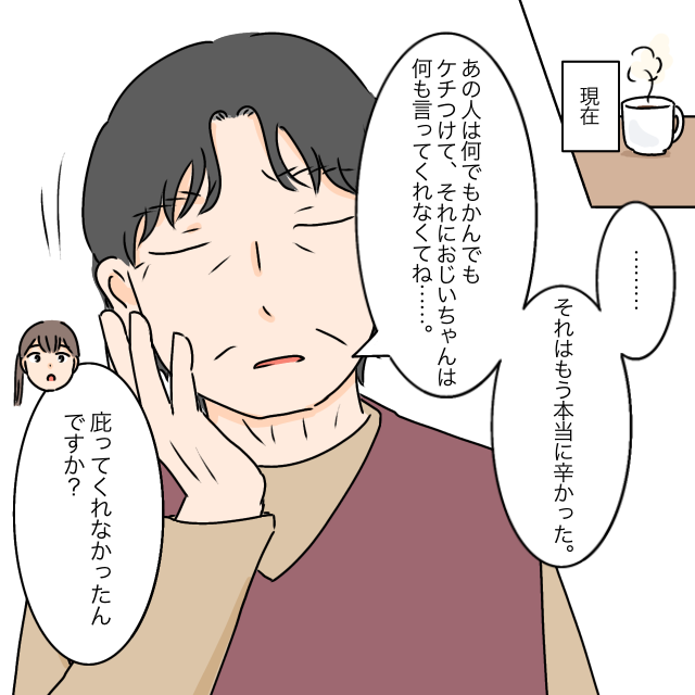 辛かった過去を思い出しながら、当時のことを振り返る義祖母。「・・・本当に辛かった、あの人は何でもかんでもケチつけて、それにおじいちゃんは何も言ってくれなくてね」そう話す義祖母に、私は「おじいちゃんは、庇ってくれなかったんですか?」と尋ねました。