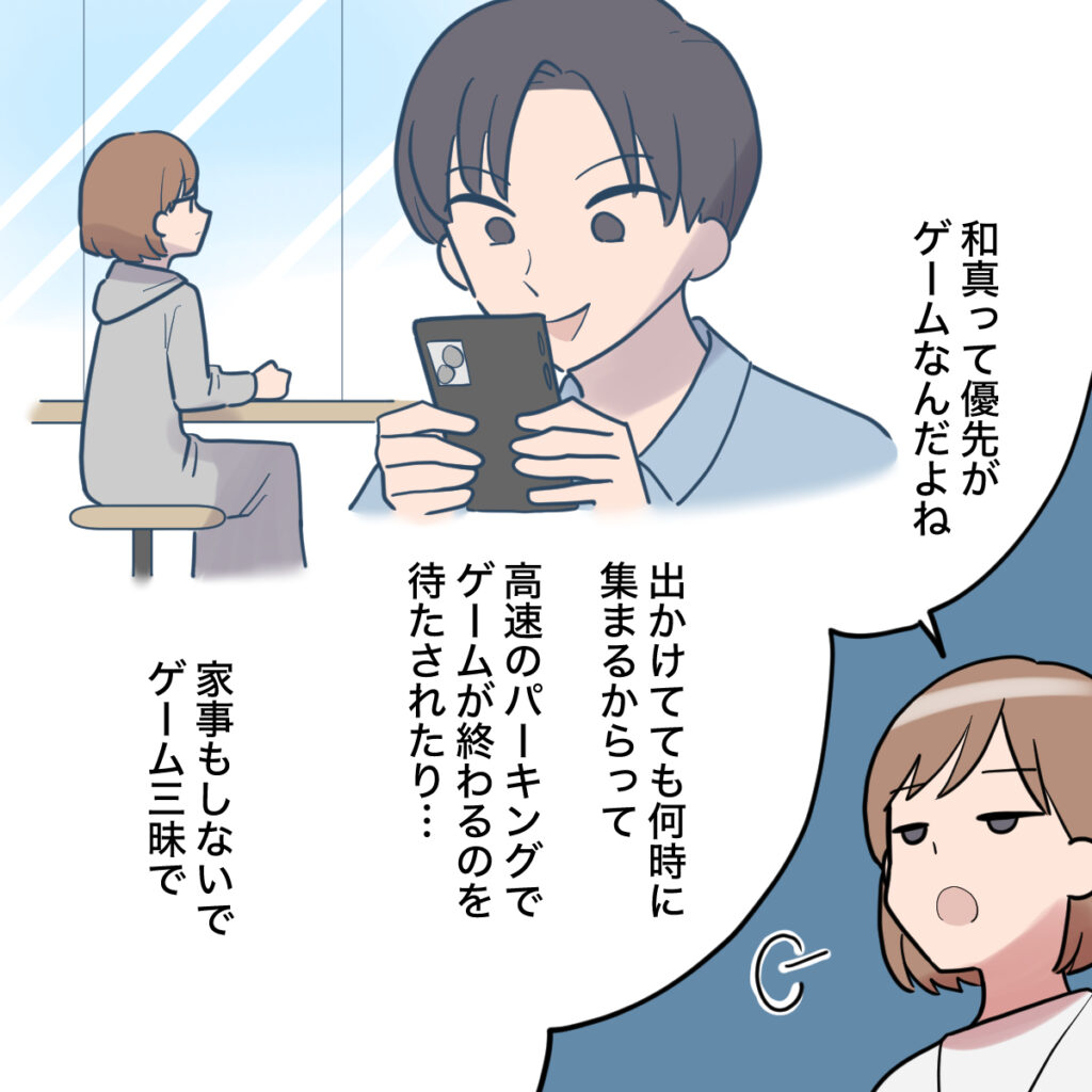 実は、同棲していた元彼の和真は、筋金入りのゲーマーでした。2人で出かけていても「何時に集まるから」と高速道路のパーキングでゲームが終わるのを待たされたこともあり、家に帰れば家事はそっちのけでゲーム三昧。正直、このまま結婚していいものかと悩んでいました。