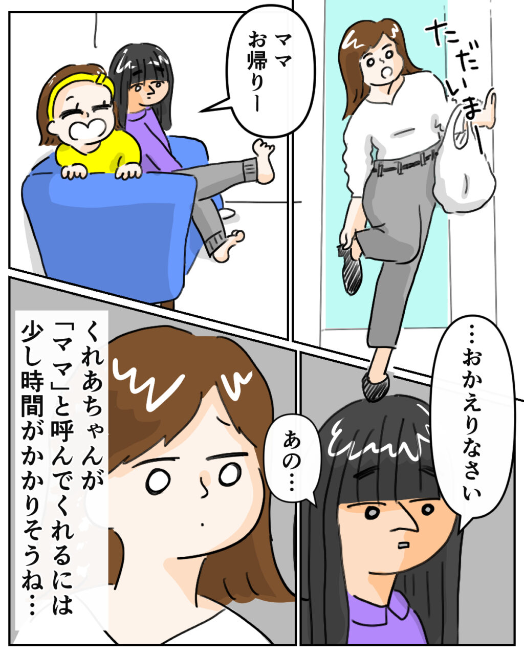 そんな背景もあって、くれあちゃんは母親とどう接していいのか分からない様子でした。私への態度も、まだぎこちないまま。「ただいま」と声をかけても、くれあちゃんはうつむきがちに「・・・おかえりなさい」と小さく答えるだけです。彼女が私のことを『ママ』と呼んでくれるには、もう少し時間がかかりそう。