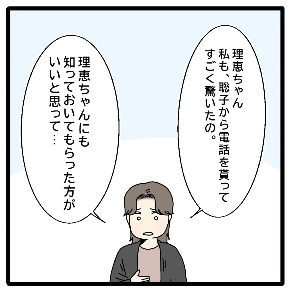 聡子さんに続いて、美沙ちゃんも口を開きました。「私も聡子から電話を貰ってすごく驚いたの、理恵ちゃんにも知っておいてもらった方が良いと思って・・・」その言葉は、どこか聡子さんを気遣っているように聞こえました。