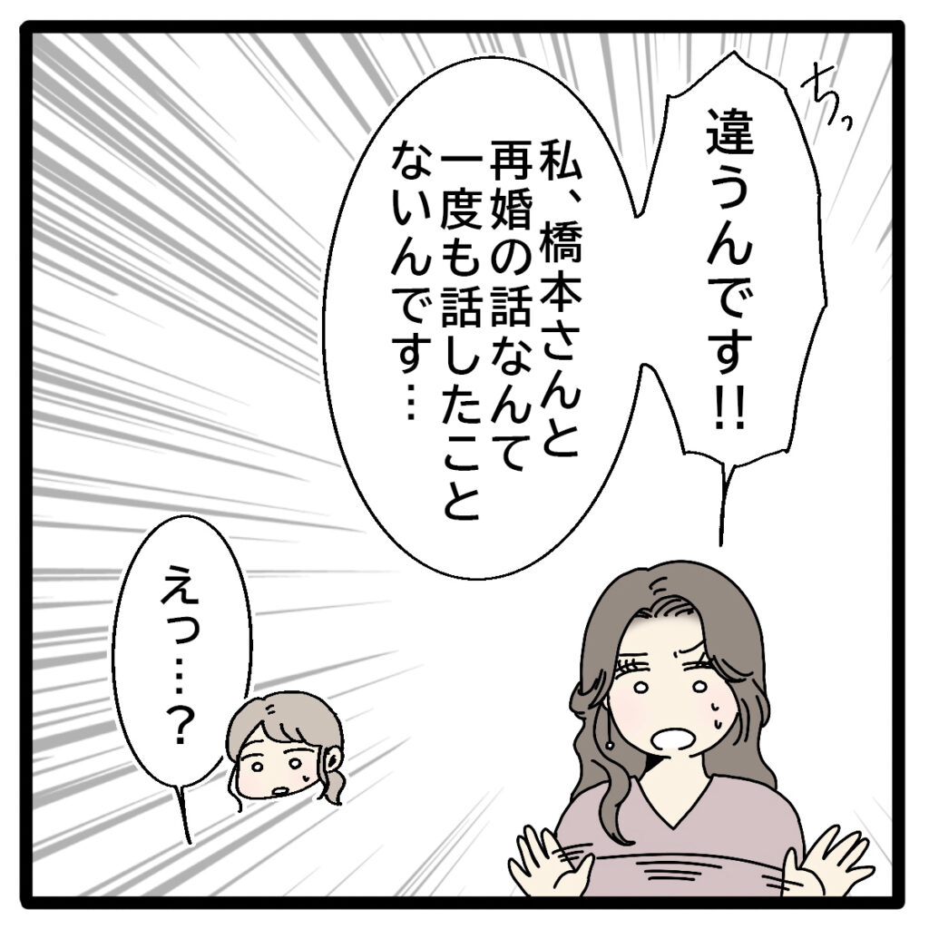 すると聡子さんは慌てて手を横に振り、「ちっ違うんです!私、橋本さんと再婚の話なんて一度もしたことないんです・・・」と必死に否定しました。私は意味が分からず、「えっ・・・?」と間の抜けた声を漏らします。正志と再婚の話を一度もしてないって、どういうこと?