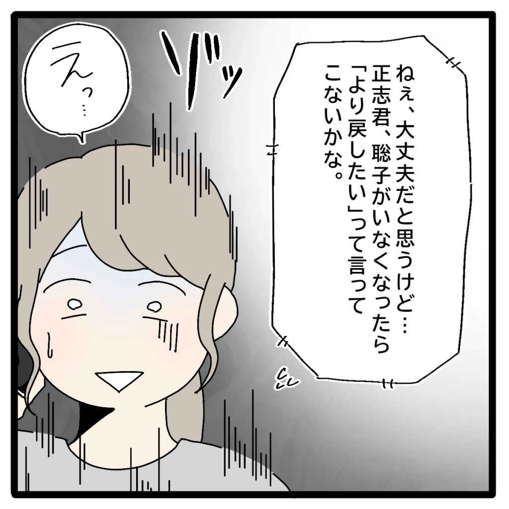 「ねぇ、大丈夫だと思うけど・・正志くん、聡子がいなくなったら『より戻したい』って言ってこないかな」美沙ちゃんがポツリと言った言葉に、「えっ・・」私は想像して背筋が寒くなるのを感じました。