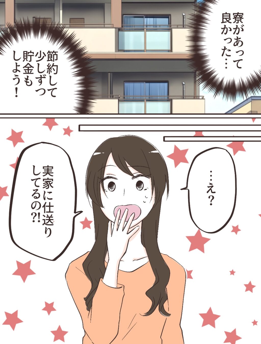 でも、会社の寮に入れたおかげで家賃がかからなくて済むのが幸いでした。節約して、これからは少しずつ貯金もしよう。それから数日後、何気ない会話の流れで実家に仕送りをしていることを話すと、同僚は一瞬言葉を失い、「・・・え?実家に仕送りしてるの!?」と、ポカンと口を開けて驚きました。