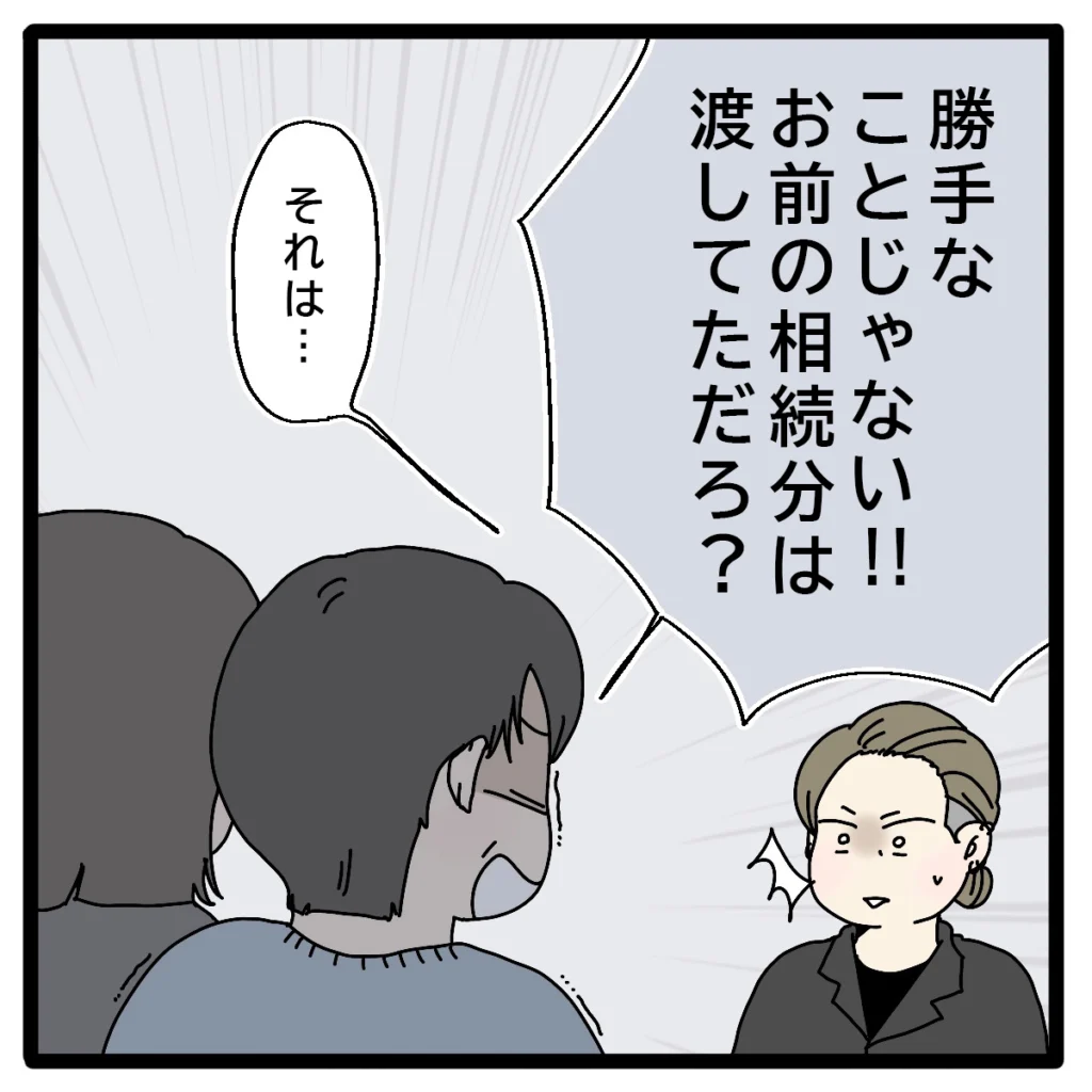 「勝手なことじゃない!!お前の相続分は渡してただろ?」と怒りに震えながらそう言うお父さんに、「それは・・」とたじろぐ総一郎さん。
