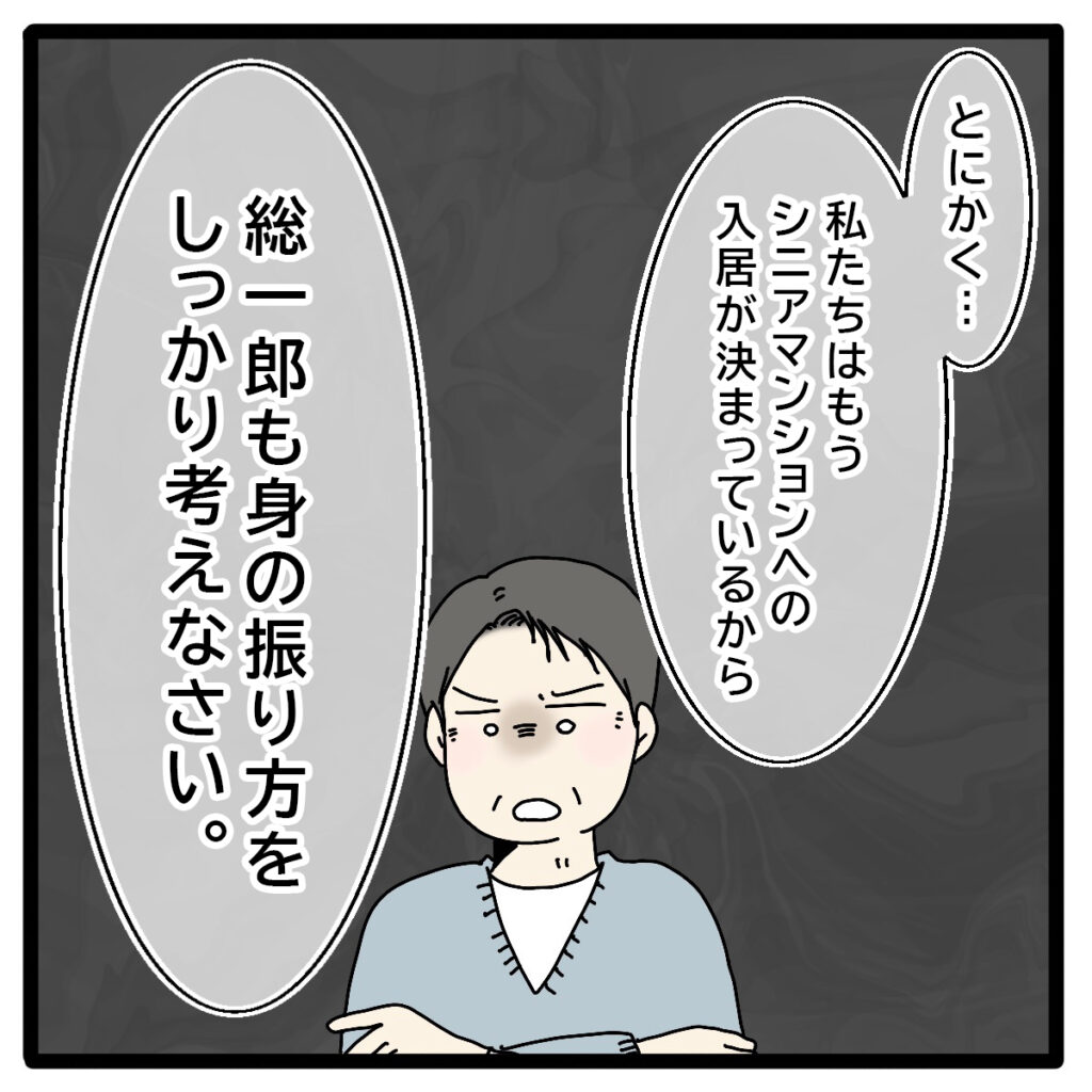 そして、「とにかく・・私たちはもうシニアマンションへの入居が決まっているから、総一郎も身の振り方をしっかり考えなさい」と話したお父さん。総一郎さんへの通告が静かに言い渡されました。