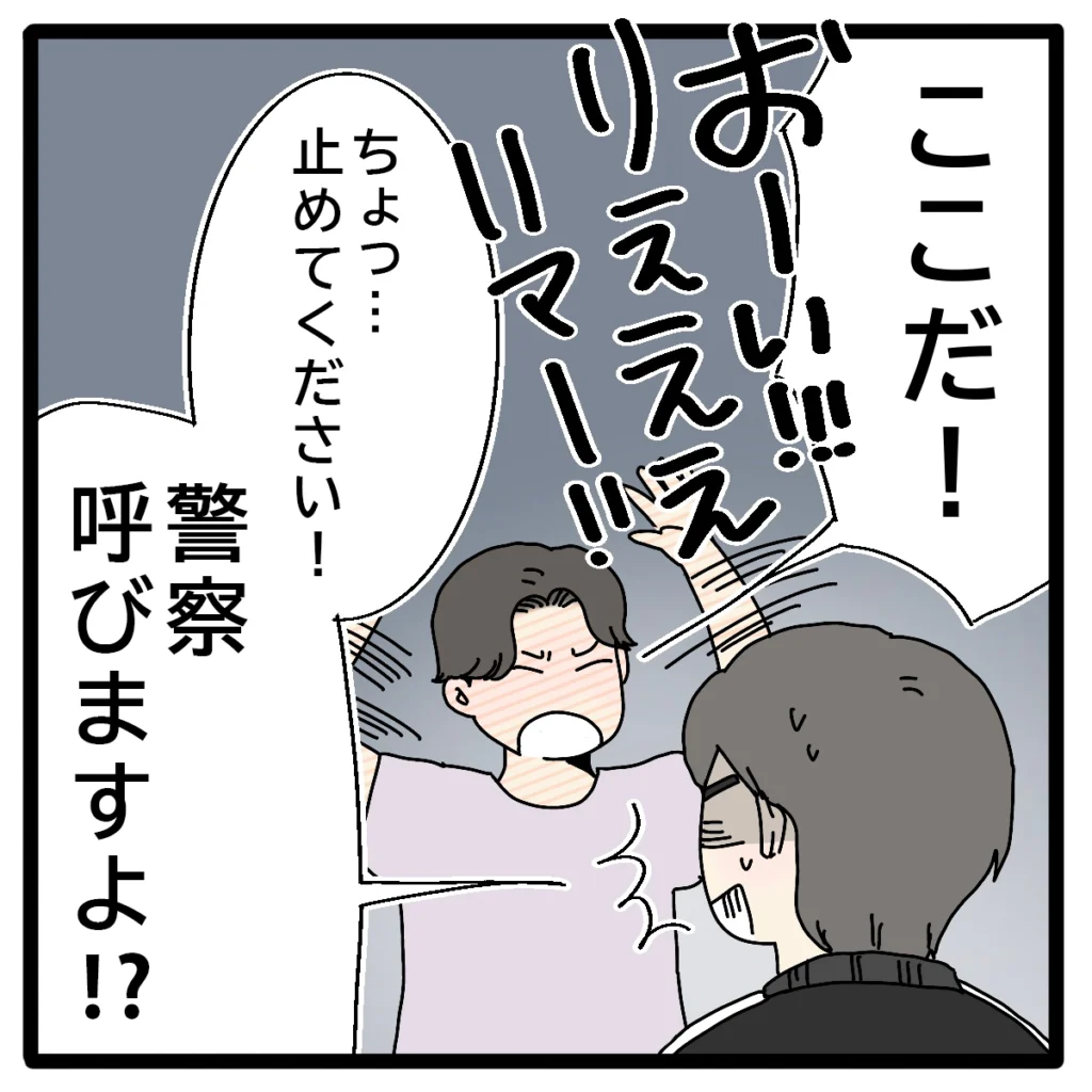 酒に酔った正志に、冷静な判断などできるはずありません。急に「ここだ!おーい理恵!リマ!」と大きな声で私たちの名前を呼び始めました。突然の奇行に驚いた男性は、「ちょ・・・止めてください!警察呼びますよ!?」と慌てて通報します。
