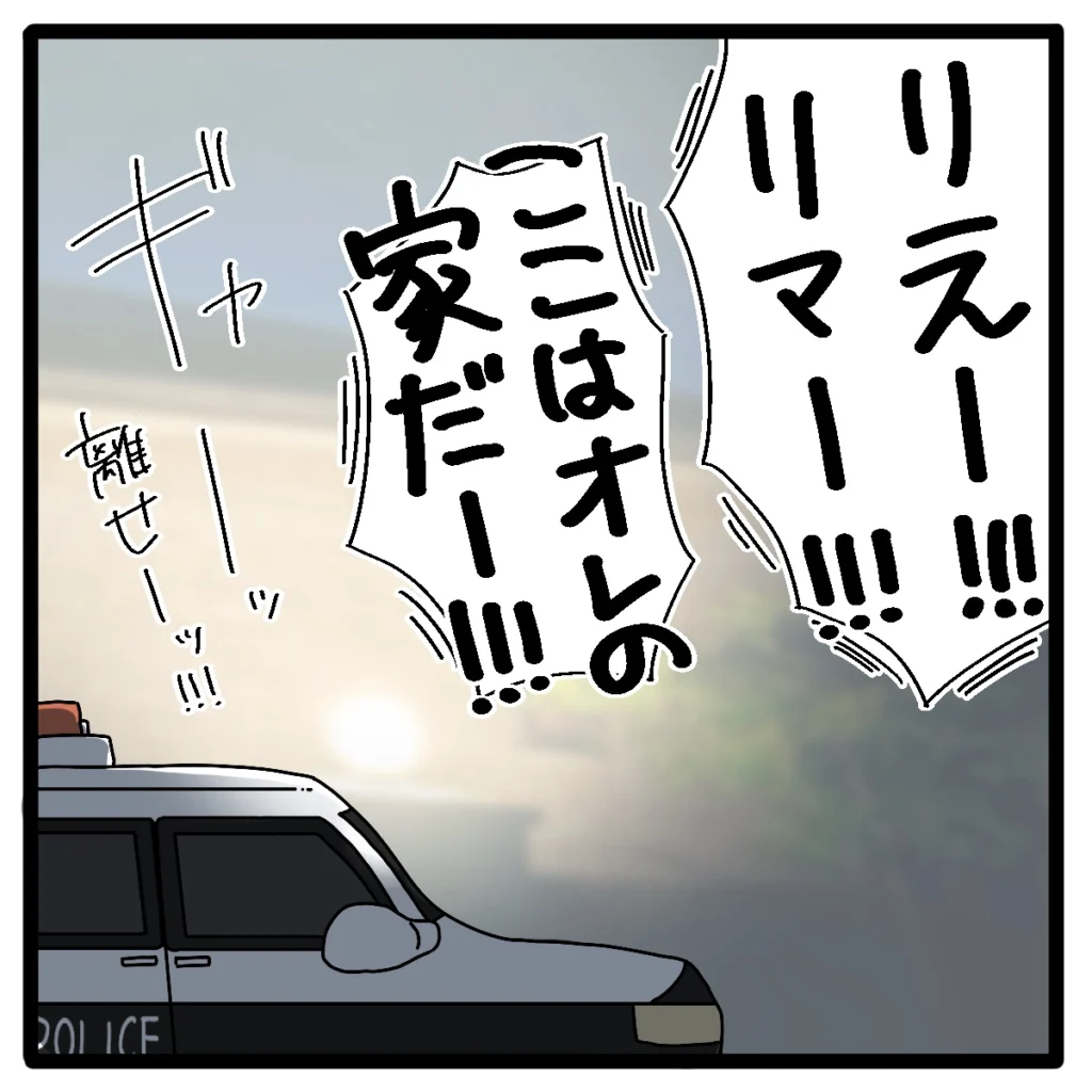 「んぁ?だ、誰だお前」戸惑いながらそう話す正志に、男性は怪訝そうに「そちらこそどなたですか?」と聞き返します。正志が「理恵とリマはどこだ?」と詰め寄りますが、男性は分かるはずもなく、困った表情で「そんな方はいませんけど?家、間違えてません?」と首をかしげました。