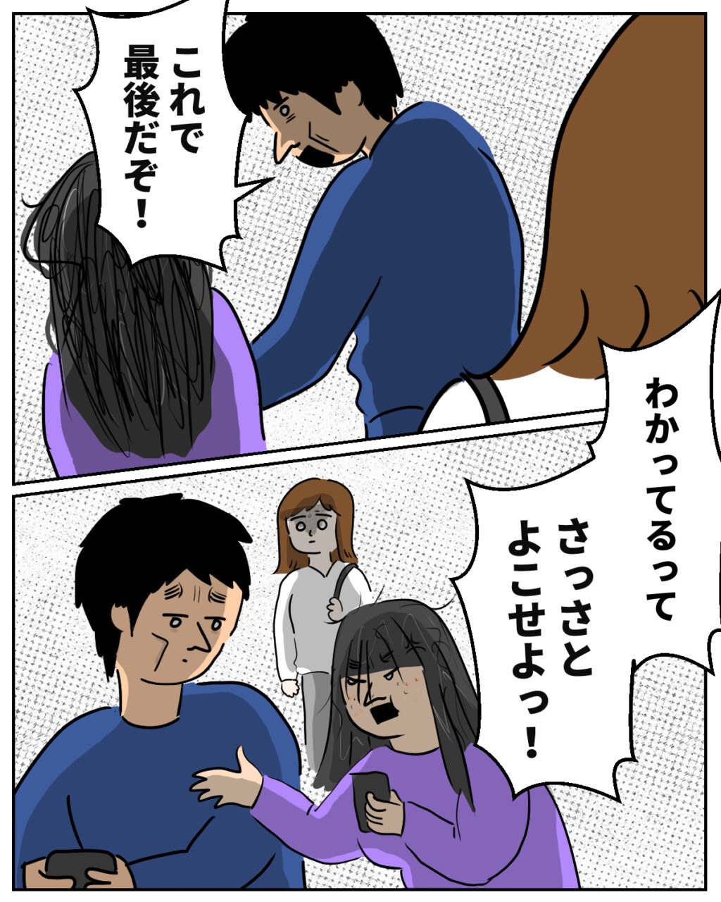 私は目を疑いました。やつれ果てた達夫さんと、清潔感を失い、あの時と変わらないくれあ。隠しきれない生活の疲れがでているようでした。「これで最後だぞ!」
