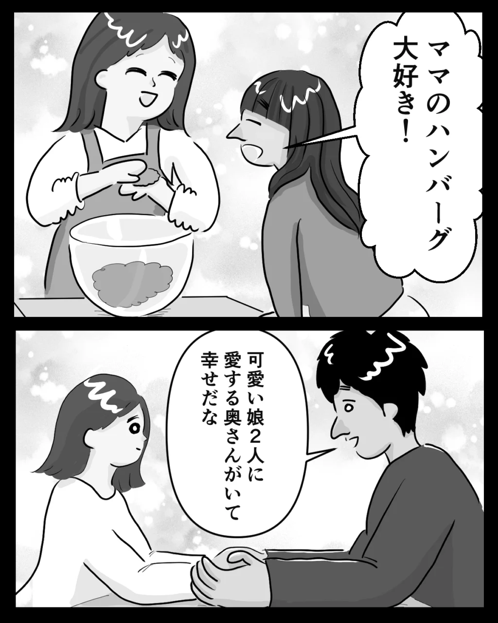 「ママのハンバーグ大好き」と言ってくれたくれあや「かわいい娘2人に愛する奥さんがいて幸せだ」と言ってくれたあの時の思い出がよみがえります。