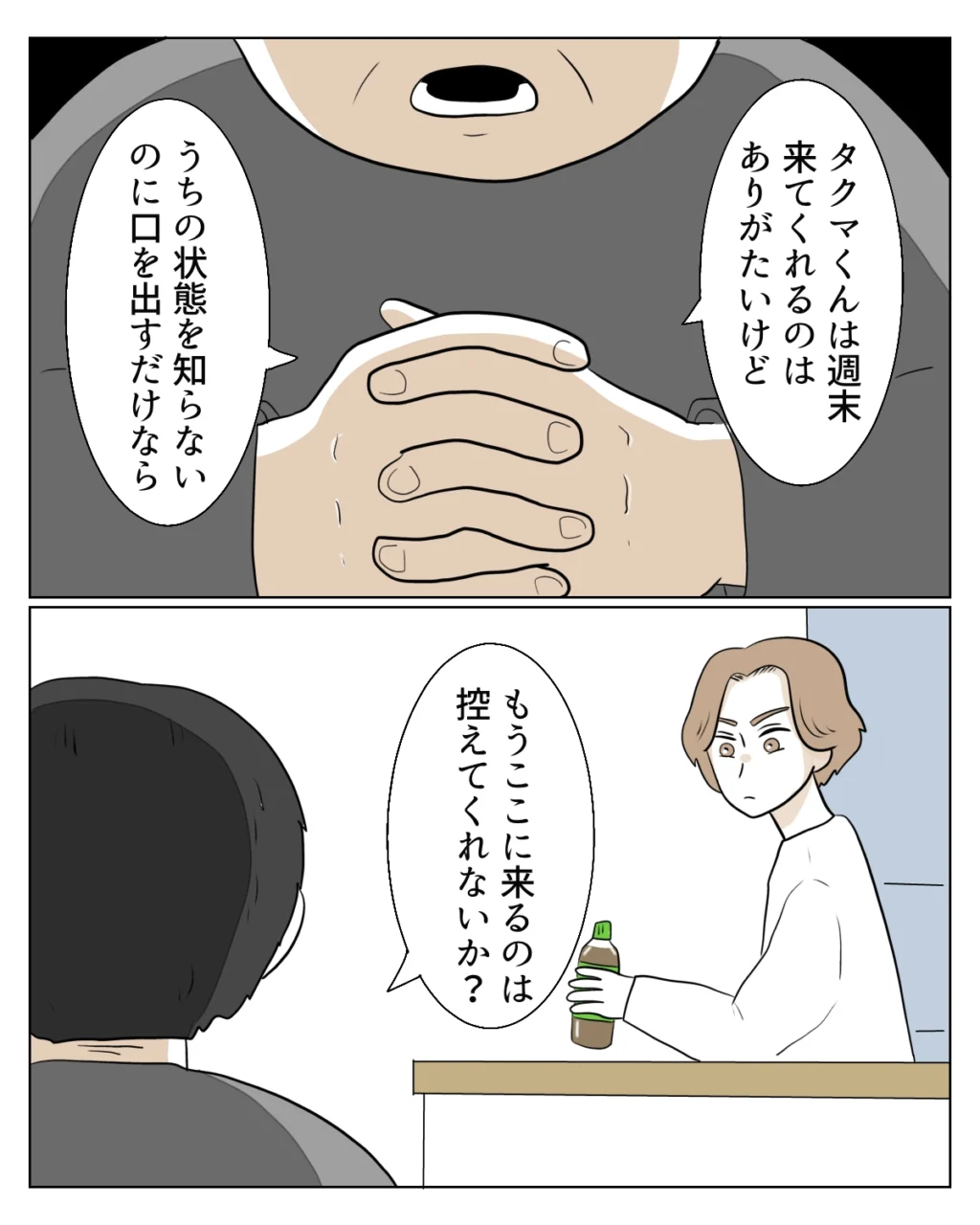 「タクマくんが週末来てくれるのはありがたいけれど、うちの状態を知らないのに口を出すのならもうここに来るのは控えてくれないか?」そうハッキリと伝えてくれました。そんな風に言ってくれるだけでも救われます。