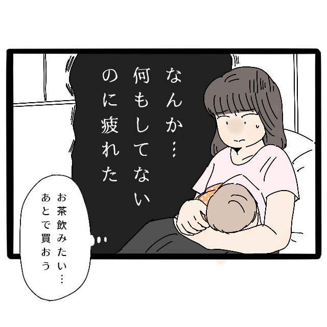 アオに授乳しながら、「なんか・・何もしてないのに疲れた」とどっと疲れを感じ、「お茶飲みたい・・あとで買おう」と呟いたのでした。