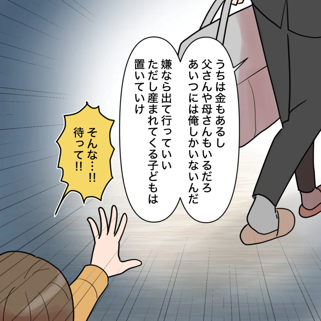 「うちは金もあるし、父さんや母さんもいるだろ。あいつには俺しかいないんだ。嫌なら出て行っていい。ただし、産まれてくる子どもは置いていけ」省吾さんはそう言い放ち、「待って」と引き留める私の声に振り向きもしませんでした。