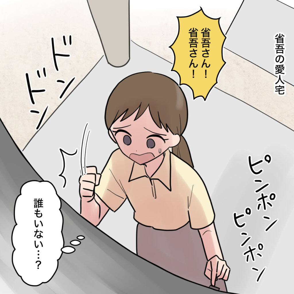 すると、通りがかった人から「ここの家の人、もう何日も帰ってないよ」と声をかけられました。「え・・?」どういうこと?省吾さんは?相手の女性もいないの?