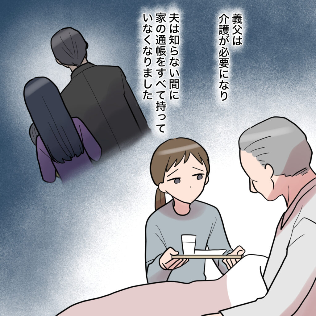 倒れた義父は介護が必要になりました。省吾さんは家の通帳をすべて持ち出して愛人と一緒にいなくなってしまいました。省吾さんは完全に私たち家族を捨て、離れた土地で愛人と生活することを選んだのです。私は、もう省吾さんが私たちのところへ帰ってくることはないだろうと静かに覚悟しました。私はこれからも省吾さんのいないこの家で、渉の子育てもさせてもらえず義父母のお世話と家事だけをしながら生きていくのでしょうか・・。