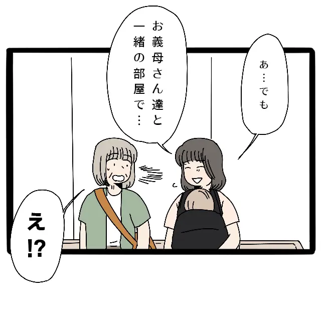 「あ・・でも、お義母さん達と一緒の部屋で・・」私がそう答えると、「え!?」とさよさんは驚きを隠せないようでした。