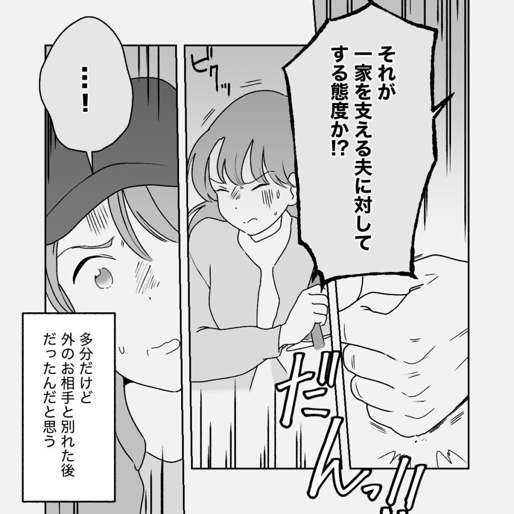 しまいには机を強く叩き、「それが一家を支える夫に対してする態度か!?」と大声で怒鳴りつけました。義母いわく、この時は外のお相手と別れた直後で、気が立っていたんだと言います。力でねじ伏せようとする父親の姿に、コウは幼いながらも強い嫌悪感を覚えたそうです。