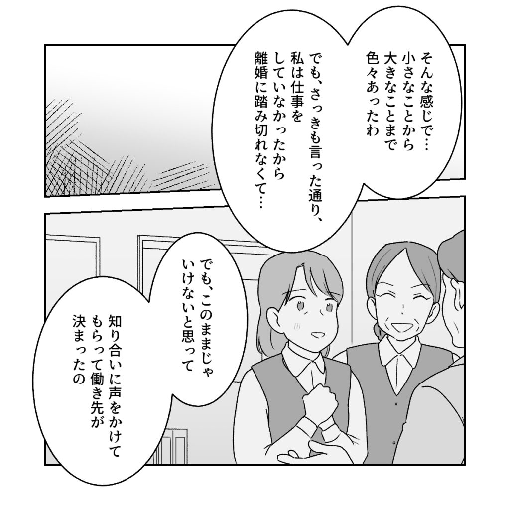 それからも、小さなことから大きなことまで、さまざまな出来事があったそうです。ただ、義母は仕事をしていなかったため、すぐに離婚へ踏み切ることはできませんでした。しかし「このままではいけない」と思い、知り合いに声をかけてもらってようやく働き先が決まったそうです。