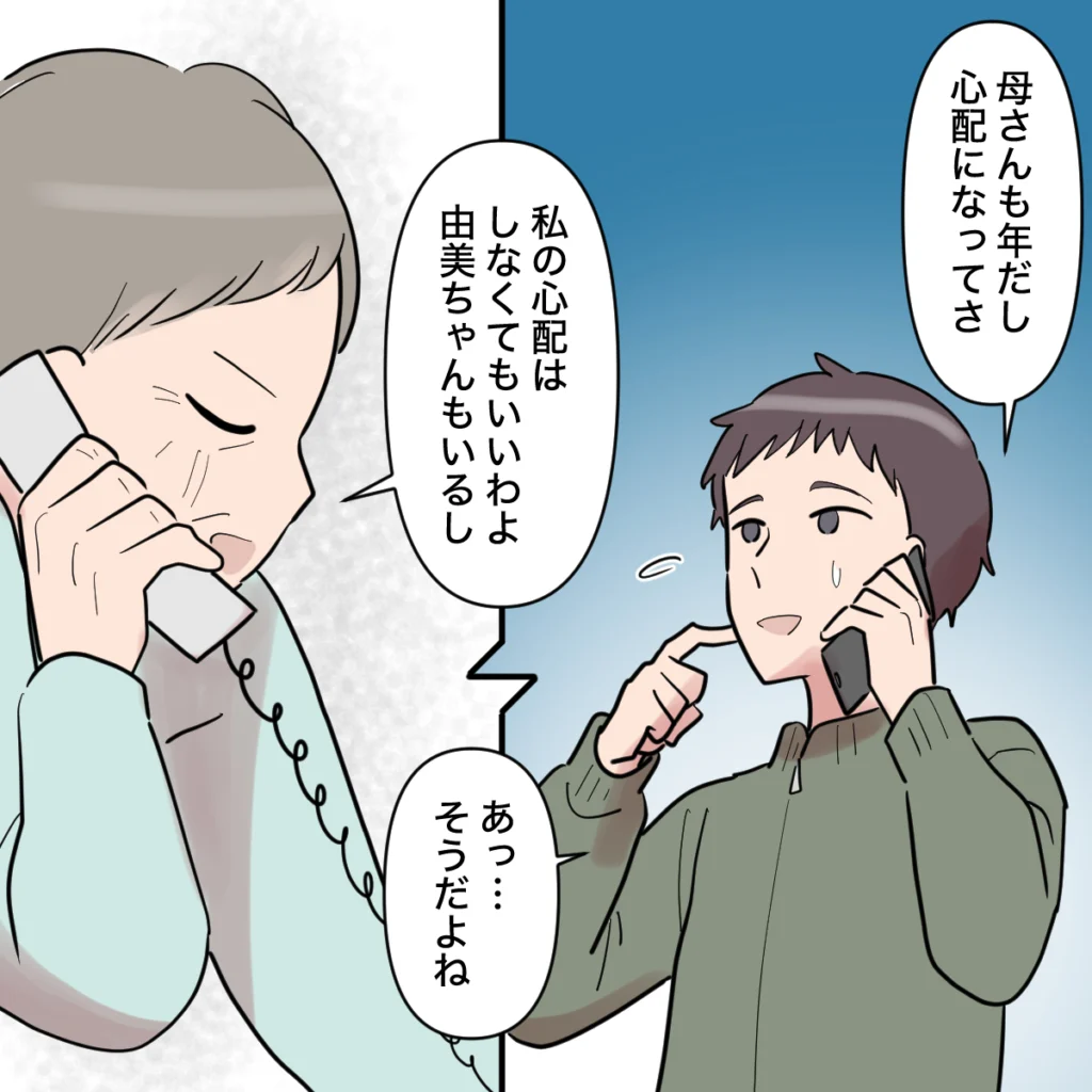 案の定、渉は「母さんも年だし心配になってさ」と口先だけの言葉を並べ始めます。ご機嫌取りのような態度に呆れた私は「私の心配はしなくてもいいわよ、由美ちゃんもいるし」と冷たく返しました。