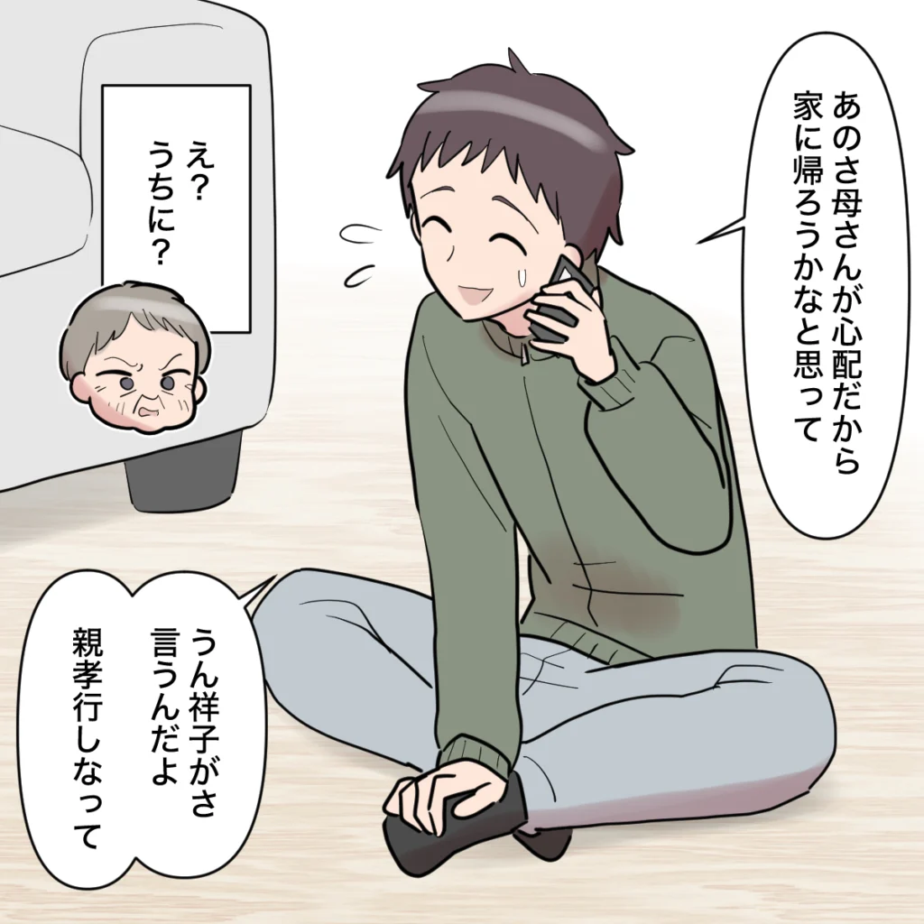 渉はへつらうような口調で「あのさ、母さんが心配だから家に帰ろうかなと思って・・・祥子がさ、親孝行しなって言うんだよ」と切り出してきました。うちに帰ってくるなんて迷惑以外の何ものでもない。私は由美ちゃんや孫たちと、穏やかで幸せな毎日を送っています。そこへ渉が戻ってくるなんて歓迎できるはずがありません。