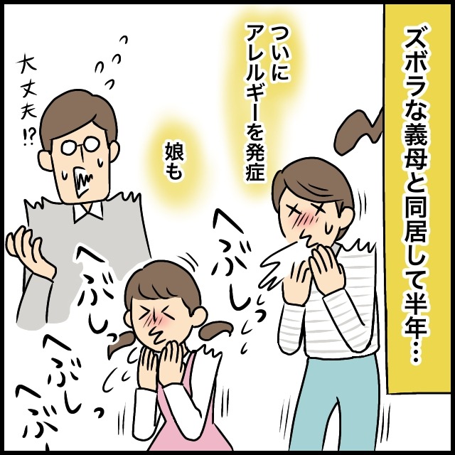 ズボラな義母と同居して数ヶ月、私はずっと気になっていることがありました。それは『布団を干していいかどうか』。義母は万年床で、今寝ている布団もいつ干したものか分かりません。意を決して布団を叩くと、ダニとほこりがモクモクと出てきて顔面蒼白。次の日、私の顔と腕に謎の湿疹が出たのでした。