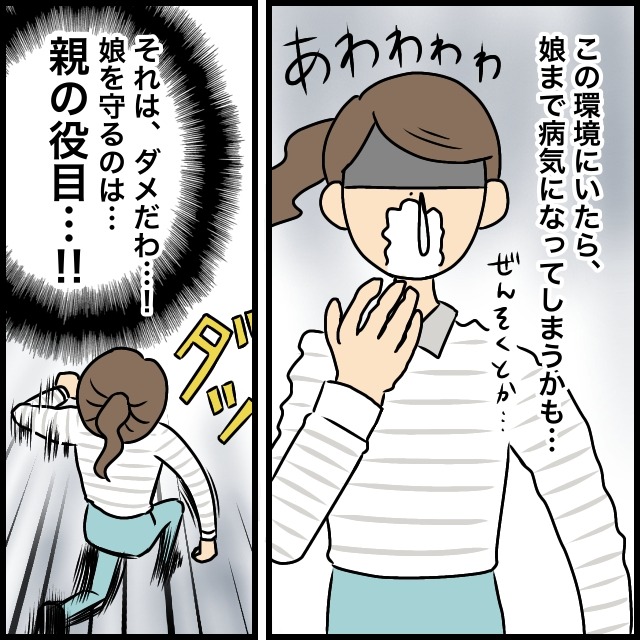 この環境にいたら私だけでなく、娘まで体調を崩してしまうかもしれない・・・。それだけは絶対に避けなければなりません。娘を守れるのは親である私だけ。私は居てもたってもいられず、義母のいるリビングへ向かいました。