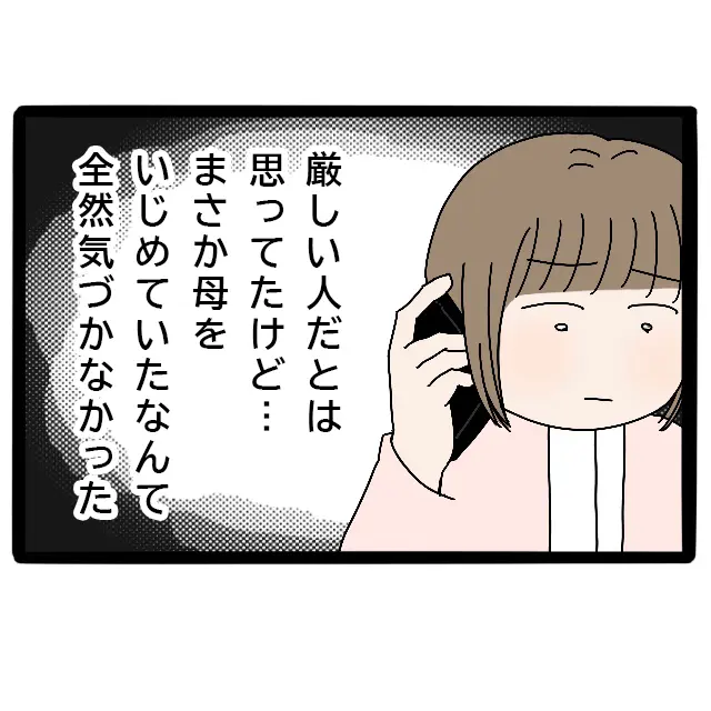 厳しい人だとは思っていたけど、まさか母をいじめていたなんて、幼かった私はまったく気づいていませんでした。きっと母は私たちに心配をかけまいと、どれほどつらくても、その気持ちを表に出さないようにしていたのだと思います。